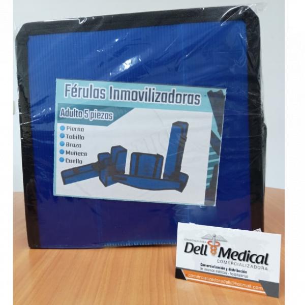Este kit de Férulas Inmovilizadoras para Adulto de 5 piezas asegura la fijación de extremidades (pierna, tobillo, brazo, muñeca y cuello) en cualquier emergencia.