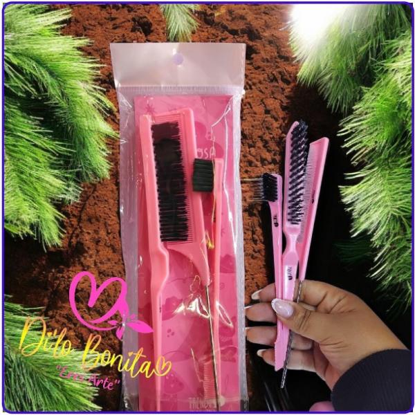 Kit profesional de peines, cepillo y brocha de doble punta para dominar cejas y cabello. ¡Herramientas esenciales en rosa!