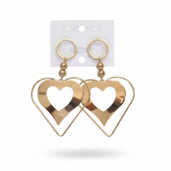 ¡Enamórate de estos aretes que capturan todas las miradas! Un diseño único con dos corazones en tono dorado brillante.