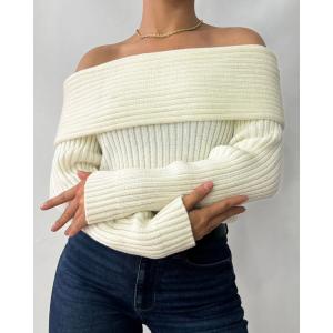 Elegante buzo tejido con un escote que revela los hombros, ofreciendo un look sensual y muy femenino. Su textura acanalada y color neutro lo hacen extremadamente versátil para combinar con jeans o faldas. Ideal para un estilo moderno y sofisticado. Disponible en varios tonos.