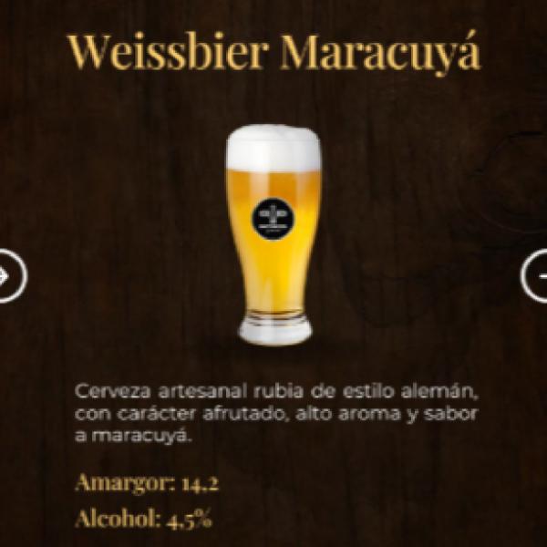 Deliciosa y refrescante cerveza artesanal rubia de estilo alemán, con un marcado carácter afrutado, alto aroma y sabor a maracuyá. Amargor: 14.2 IBU Alcohol: 4.5%