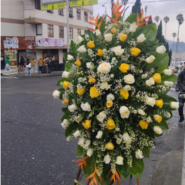 Un majestuoso arreglo que irradia alegría y tranquilidad con la mezcla de Rosas amarillas vibrantes, Rosas blancas delicadas y un toque exótico de Aves del Paraíso. Este arreglo puede ser personalizado en tamaño, tipo de flor y colores. El precio final depende de las necesidades y especificaciones del cliente.