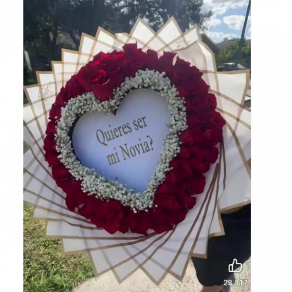 El ramo ideal para el día más importante: una corona de Rosas Rojas con un corazón central para hacer esa pregunta inolvidable. ¡El sí está garantizado! Este arreglo puede ser personalizado en tamaño, tipo de flor, colores y mensaje central. El precio final depende de las necesidades y especificaciones del cliente.