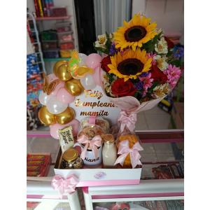 Tu eliges presentación y esta se personaliza con la temática que necesitas, tonalidades, mensajes y menú (desayuno o ancheta ) todo lo personalizo y hago a tu gusto. Y de acuerdo a la presentación, menú y dirección de entrega es el costo. 🙂