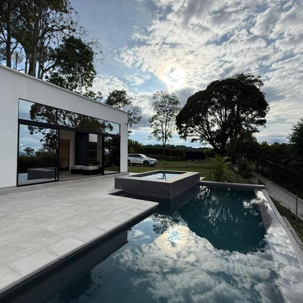 TresMarías: Confort y Naturaleza en Palestina, Caldas 🌿 Casa campestre para 10 personas con distribución funcional: 3 habitaciones cama, nido y closet, sofá-cama y 2 baños amplios con agua caliente. Área social integrada con cocina equipada, barra americana y ventanales panorámicos. Exterior premium con piscina y jacuzzi de sal, zona BBQ y parqueo para 10 vehículos. A solo 30 min de Manizales y cerca del futuro Aerocafé. Un refugio de biodiversidad perfecto para el avistamiento de aves.