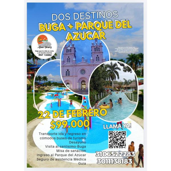 Un viaje que combina la fe y el descanso. Visita al Señor de los Milagros en la Basílica de Buga para un momento de espiritualidad y sanación, seguido de una tarde de sol y piscinas en el Parque del Azúcar. El precio varia dependiendo de diversos factores.