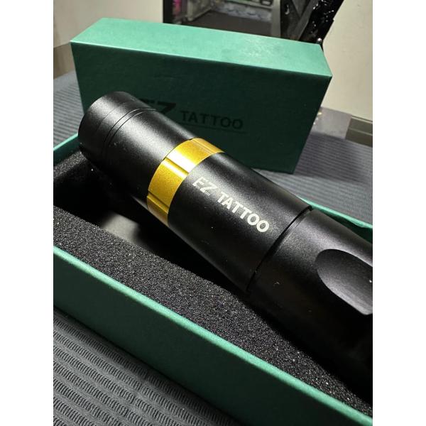 ⚡Nueva EZ Caster inalámbrica⚡ disponible en negro con dorado. Máquina tipo pen con marco de aluminio, motor Coreless DC y batería recargable de 1500 mAh. Stroker 3.5 mm, peso 171 g, carga en 2–3 h y autonomía de 3–5 h. Opera entre 5–12 V con hasta 10000 rpm a 12 V, incluye 4 memorias. Compatible con cartuchos, sistema de engranajes silencioso y sin vibración. Ideal para líneas, sombras y relleno. Diseño ergonómico 120×30 mm con cable USB-C.