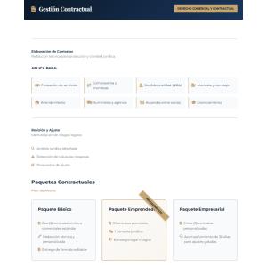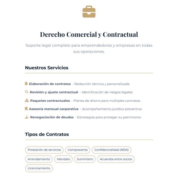 Soporte legal para emprendedores y empresas en sus operaciones diarias. -Elaboración y revisión de contratos -Paquetes contractuales a medida -Asesoría mensual corporativa -Renegociación de deudas