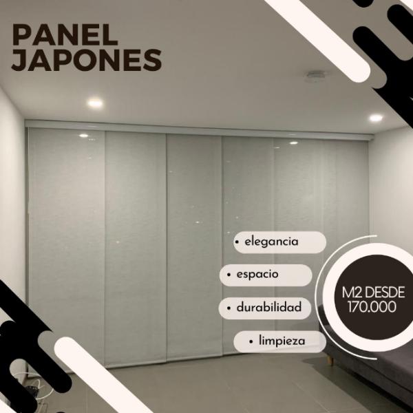panel japonés es un sistema de cortina compuesto por telos verticales ,se deslizan sobre un riel, permitiendor el paso de la luz y la privacidad de un espacio. Son ideales para grandes ventanales y espacios amplios, ya que ofrecen una apariencia moderna