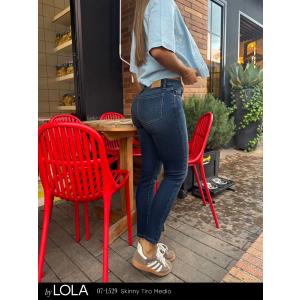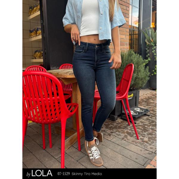 Jean Lola Skinny de tiro medio y tono azul oscuro: un diseño clásico y entallado que estiliza la pierna con un color elegante y versátil.