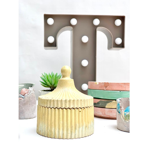 Cofre de Concreto para organizar Joyas, joyero, organizador, decoración de hogar e interiorismo, hecho a mano de forma artesanal. Diámetro: 8cm Alto: 10cm Material: Concreto Color: Personalizable