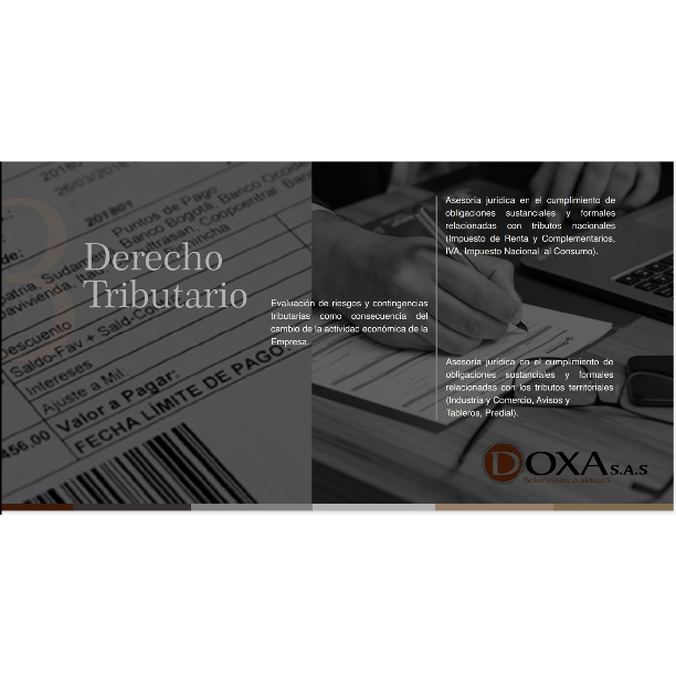Acompañamiento en la toma de decisiones con relevancia tributaria, defensa ante la administración de impuestos en procesos sancionatorios y de fiscalización, evaluación de riesgos y cumplimiento de obligaciones relacionadas con tributos territoriales y nacionales, representación judicial.