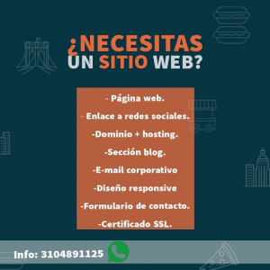 Diseño 4 pestañas Hasta 15 fotografías Seo básico y cuenta Analytics Link Redes Sociales Y whatsapp Chat en vivo Formulario de contacto Dominio, host , certificado ssl por 1 año 5 cuentas de correo con el nombre de la empresa Manual de capacitación y capacitación presencial u online Adaptabilidad para móviles