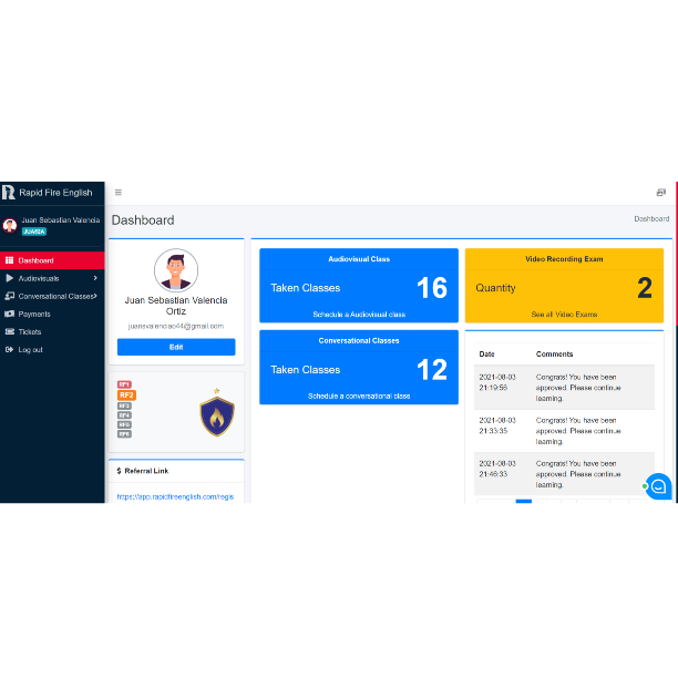 Plataforma web para la optimización de tareas administrativas y control de información, con bases de gamificación y con módulos de eventos, cursos, clases presenciales y virtuales y venta de productos