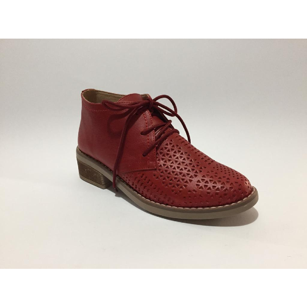 Bota para dama: capellada en cuero, altura 2 1/2, forro sintético, plantilla en espuma, suela poliuretano, casual, colores rojo y azul, en el mes de julio 20 % de descuento.