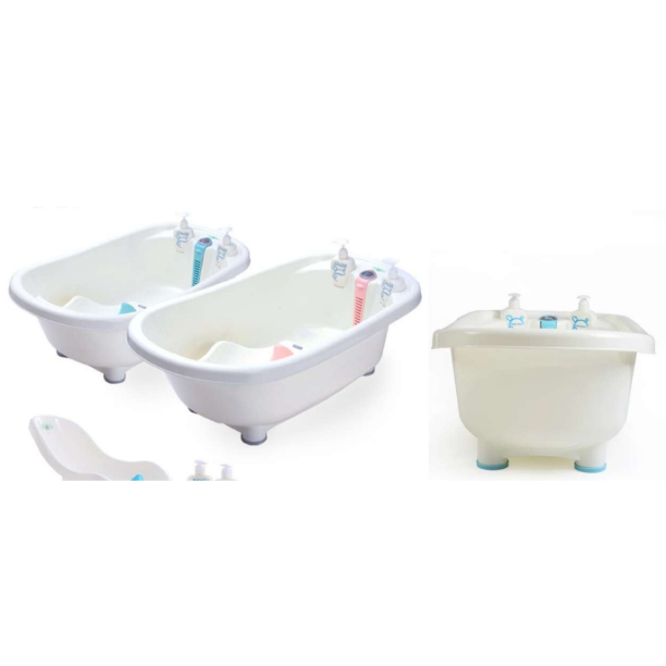 Bañera con termómetro, apoya bebes y tarro para champú y baño líquido