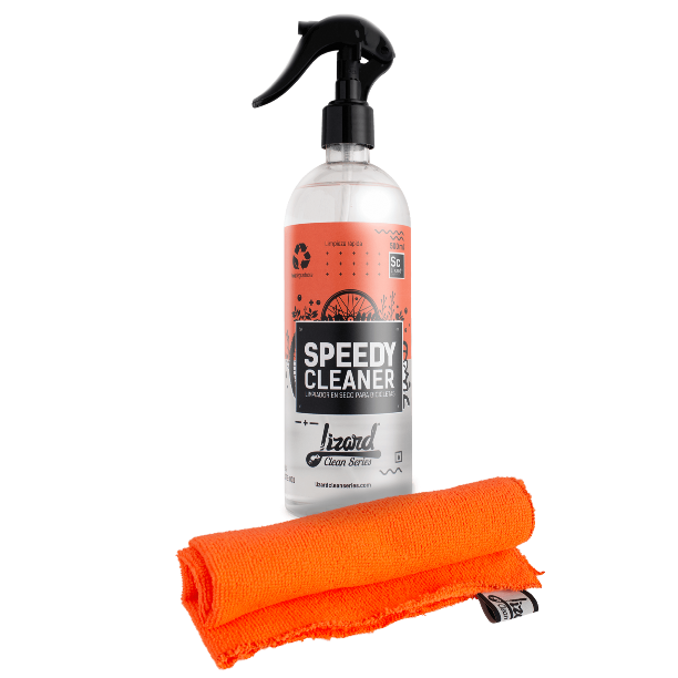 Limpiador en seco especializado con paño de microfibra para la limpieza de bicicletas, NO necesita agua, biodegradable y responsable con el medio ambiente.