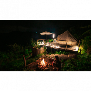Magic: es un espacio de más de 60 metros cuadrados, con una carpa de lujo de 4m de diámetro dotada de una cama Queen, chimenea, malla de catamarán de 2x2m, un deck con una increíble vista a Manizales, jacuzzi, baño privado, ducha al aire libre y una fogatera perfecta para contemplar las estrellas.