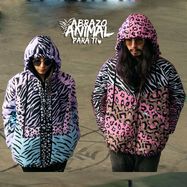 Dinos si te hacen felices los abrazos!! Acá te traemos un super abrazo, un abrazo ANIMAL. ------- Chaqueta elaborada con telas resistentes al agua, con diseños exclusivos Calle. La chaqueta es abollonada, doble faz, con bolsillos en ambos laterales con cremallera y capota.