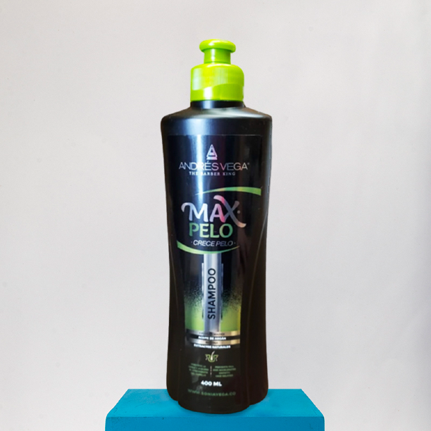 El Shampoo Max Pelo Andres Vega con células madre, aceite de argán, biotina y extractos naturales como el romero, la caléndula, el aloe vera, ortiga, árnica y manzanilla, limpia y fortalece los cabellos débiles. A su vez previene la caída y acelera el crecimiento dando vitalidad y fuerza al cabello. Por otra parte, al ser un Shampoo libre de sal evita la deshidratación y la perdida de flexibilidad para un cabello perfectamente hidratado, suave y naturalmente brillante.