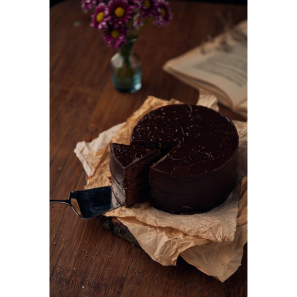 La especialidad de la casa: Torta de brownie rellena de arequipe y cubierta con salsa de milo de 10 a 12 porciones