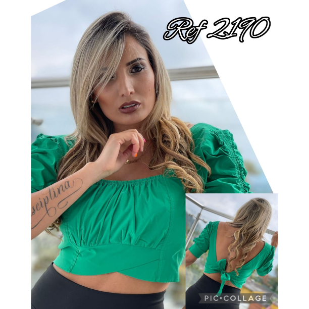 Blusa corta con escote en la parte de atrás, maga recogida.