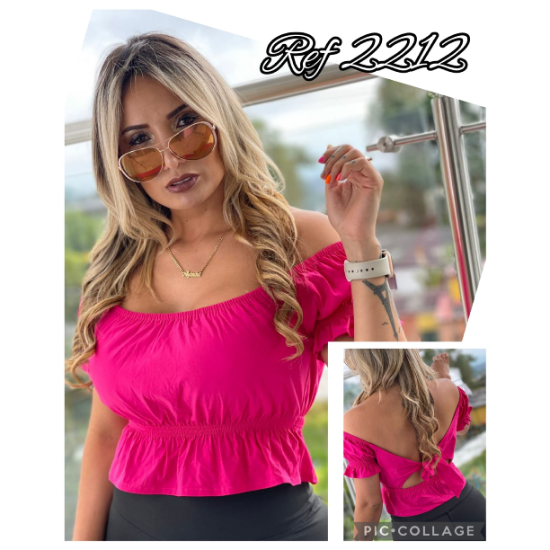 Blusa corta escotada en hombros, y con manga corta