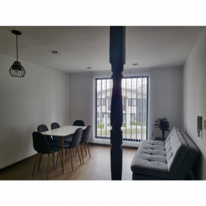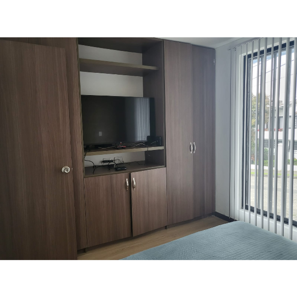 Apartamento de una habitación con excelentes acabados modernos con una cama doble para dos personas, cocina, sala comedor con un sofá cama y baño independientes, con capacidad básica para hospedar a dos personas y con acomodación adicional un total de hasta cuatro personas . Apartamento con acceso a una terraza de uso común, con vista espectacular y zona de lavandería para el confort de sus visitantes. Ubicación privilegiada cerca al Cable, a Sancancio y zona Gourmet Palermo.